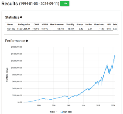 Over these three decades, your approach would have netted a compound annual growth rate (CAGR) of 10.36%, and by September 2024, your balance would have swelled to $1,331,586.44. That’s the magic of consistent investing and the power of compounding returns over time.