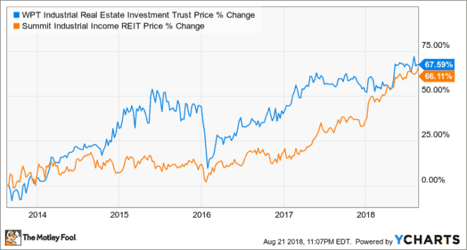 You don’t need to be an aggressive growth investor to be able to profit off the e-commerce boom. Both Summit and WPT are stable REITs that provide income investors with a generous, steady distribution to go with ample capital gains, as the demand for industrial properties continues to spike.