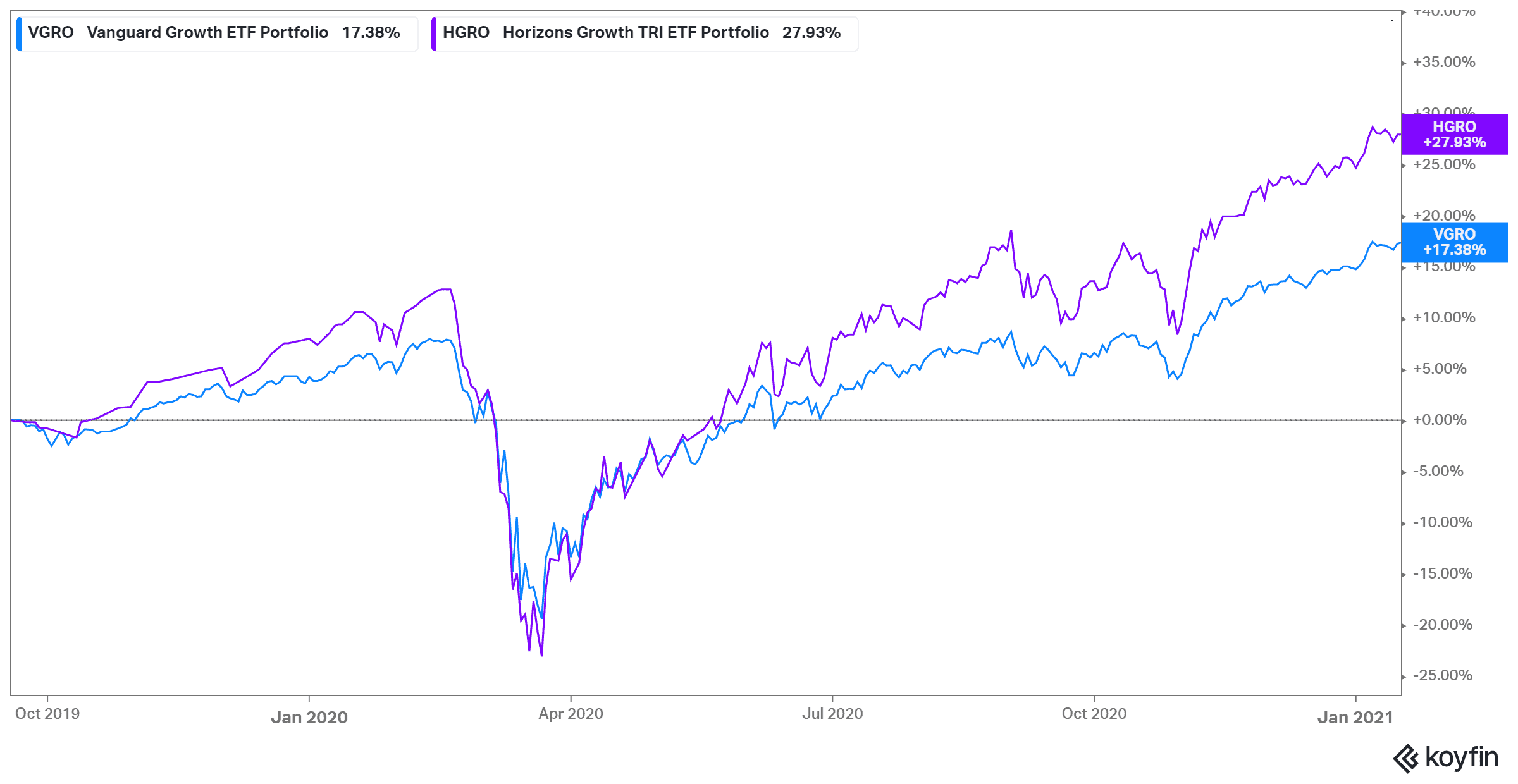 Another company with a slew of solid options is Horizons with its Horizons Growth TRI ETF Portfolio (TSX:HGRO). The company already has a number of heavy hitters under its belt, but this newest one has remained stable, even during the market crash of 2020. While other ETFs have around 30% invested in U.S. equities, Horizons Growth has over 50% as of writing. With a new administration in the White House, that could mean Horizons sees a boost in the coming months should there be an economic recovery.