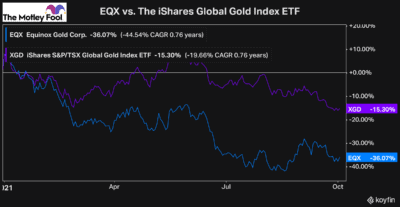 From 2019 to 2021, Equinox earned investors a total return of 187%, compared to the iShares Global Gold Index ETF, which earned investors just 84%. However, because Equinox is one of the top growth stocks in the industry and therefore has sold off more than its peers, it offers a significant opportunity today.