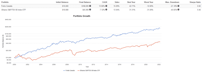 Overall, a portfolio consisting of 100% Fortis had significantly better risk-adjusted returns thanks to its low volatility and dividend growth. If you’re going to buy and hold a single stock forever, you could do a lot worse than Fortis. If you’re implementing a dividend-growth strategy, Fortis should absolutely be one of your core holdings.