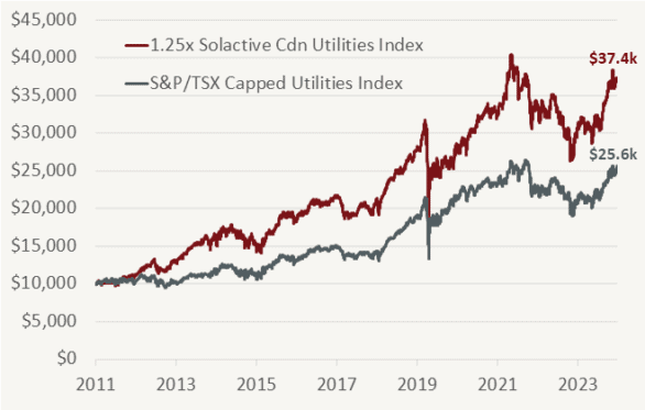 Historically, leveraging the Solactive Canadian Utility Services High Dividend Index TR by 1.25 times has delivered strong returns.