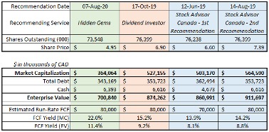 Dividends: Stingray currently yields a very healthy 6.1%. I don’t expect it to increase the payout during a pandemic-it would be bad optics to do so at a time when the company benefits from government wage support for furloughed workers. But then, I also don’t expect it to cut the payout, since the present dividend is well covered by FCF generation, requiring just $22 million annually to support.