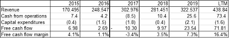 Gathering market share is one thing. It’s how these increased volumes translate to the bottom line and the company’s free cash flow profile that’s the really beautiful thing about this company—something that’s conveyed by the table below.