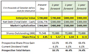 And then, what if enterprise value rises to levels seen at the time of our earlier recommendations? It’s a pretty great outcome for today’s investors, that’s what.