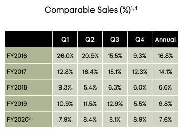 To make sure Aritzia stays on the right track, we’ll look for the company to maintain its elite sales per square foot, as it expands into the United States. Furthermore, we’ll be tracking comparable store sales to ensure existing stores are maintaining their relevance. If we see these metrics moving in the wrong direction, we’ll need to reassess whether Aritzia’s brand can maintain its relevance.